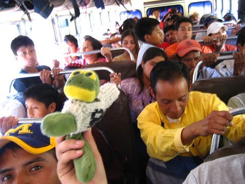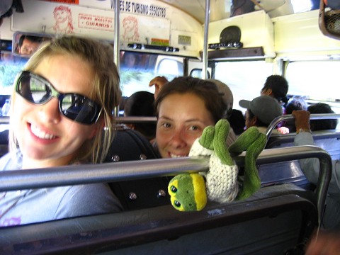 We were full of adrenaline for about the first hour. Then, the hard wood seats, windy roads and constant exhaust fumes were making us sick! Soon thereafter, a few of us traded out so we could sit in the front with the driver. 4 hours later, we arrived at the border. We were the second team there! From that point, we boarded what looked like a party bus (which was in fact a school bus with crazy paint on the outside) and rode two hours, cramming 3 people per seat.
