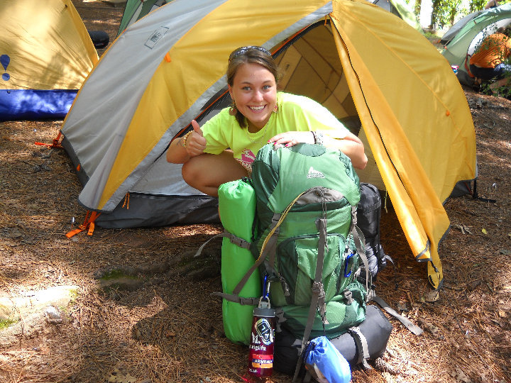Me before our surprise roughing it camping trip with my stuff and Jessicas in one pack 🙂