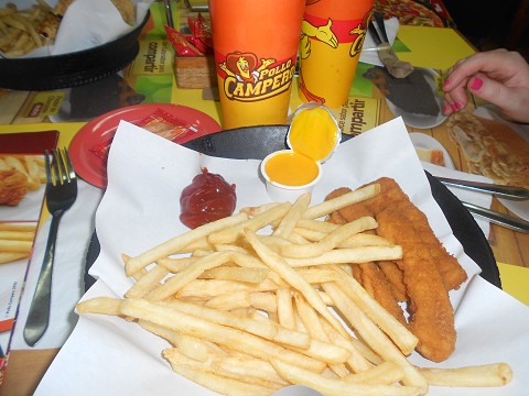 Time to pack up and head for home! We ate an exciting PB&J sandwich and cookies for lunch before we had our 2 ½ hour bus ride back to base camp. Bad thing is, most people felt sick on that entire ride home…including me! :/ We got home around 4 and started setting our tents up for our last week here. Team leaders pulled up soon after. (They were at a leader’s training retreat at another hostel on the lake.) My leader, Travis, had the idea to go out and celebrate my day by going out to dinner. Heck yea! There’s only two places I feel are safe enough to eat, so we went to a restaurant called Pollo Campero for some chicken, which is kind of like a Zaxby’s. Yum!