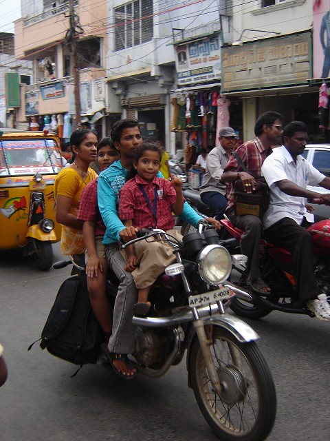 3. The noise! Incessant honking, which they do because many cars/trucks do not have mirrors. It is not a rude but an expected thing. The horns often sound like those on kids' bikes though – loud and squeaky. There are also many processions and loudspeaker announcements throughout the day in the Telagu language that we have no idea what are about.