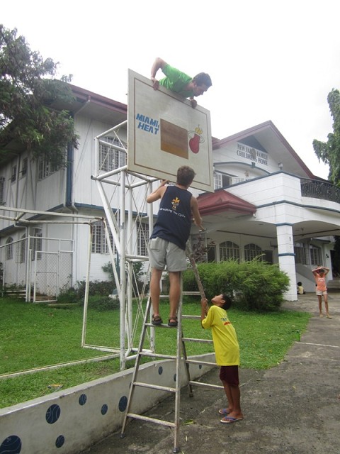 A visitor donated these basketball backboards for the children's home, and Frank asked me to paint them. IIt was a day of excitement when he and Ben helped to put them up at the children's home.