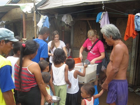 Squadmates Katie and Rachel help with the daily feedings in various places in the city, while Frank built and painted these awesome shelves and artistically arranged items for the store at our ministry site.