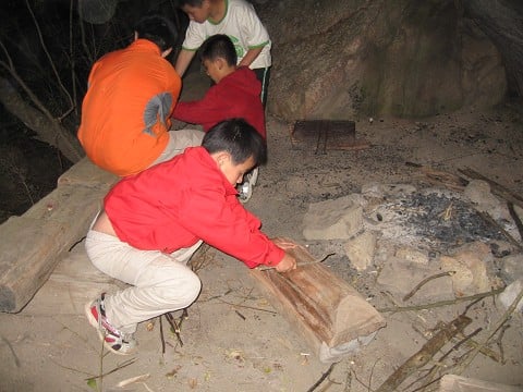 Camping out in a cave with 7 10yr old Taiwanese boys (attempting to build a fire!)