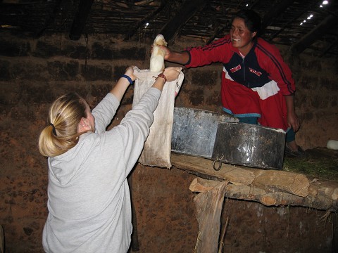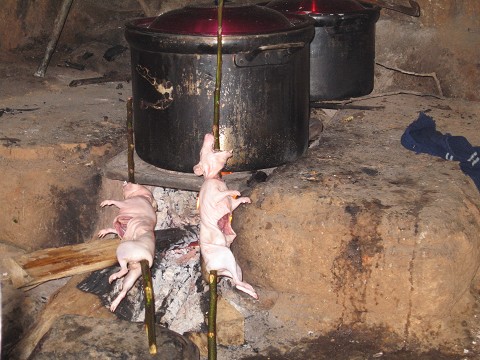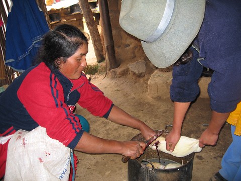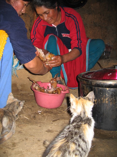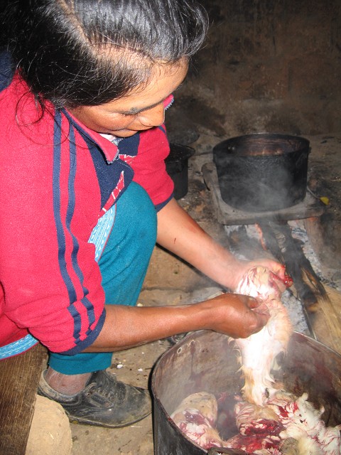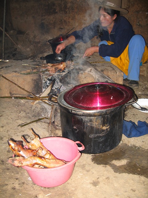 So, those of you who have been dying to know how to prepare couy yourselves – think of this blog as a personal guide to killing, preparing and eating this little rodent! (First tip: You need to get rid of the idea that guinea pig is a pet.  Just like chicken, they are raised for consumption.)  Up in the mountains, each house is amply supplied with their own couy stash.  While in Utupampa, I had the privilege of not only consuming this delicacy, but helping with the entire 4 hour preparation process!