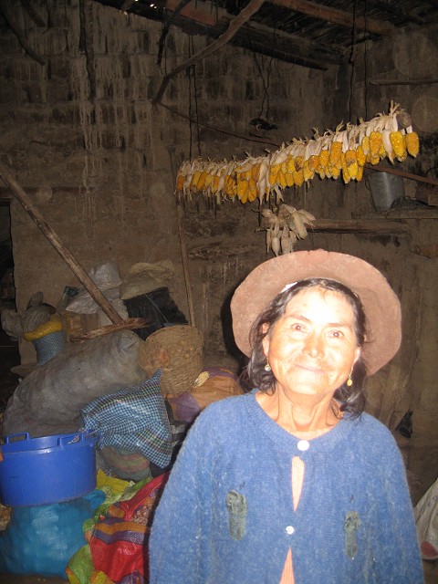 Juanita and her daughter, Reina, radiate His glory. Not only individuals, but families are coming to Christ. We stand in a dimly lit room singing “Todopoderoso” (All Powerful One”), celebrating with the angels in heaven. Both have just accepted Jesus as their personal Savior. Potatoes, squash and carrots lie in giant sacks scattered around in their storehouse/kitchen. Corn hangs from the rafters, drying. Guinea pig cooing echoes from the corner. Supper? Three sacks of veggies are sent home with us – a generous offering of thanks. But the guinea pig stays…maybe next time.