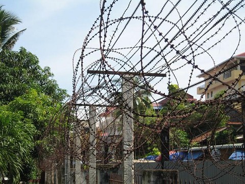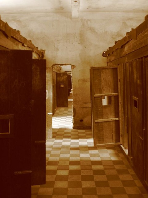 (These pictures were taken from inside the S-21 torture prison which is located in a former high school building in Phnom Penh. This was a location of intense interrogation and torture. Around 20,000 inmates were destroyed (most city folk). Only 7 lived to tell of the horrors that took place within the confines of the barbed wire fences)