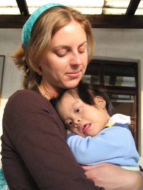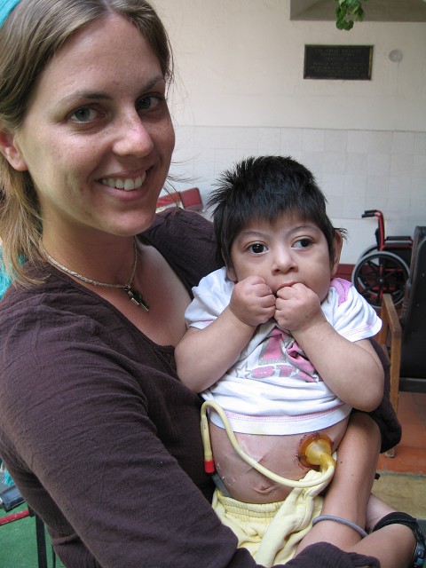 I walked into the children’s ward. The walls were lined with cribs. Some of the kids were sleeping, some were crying, others where banging their heads against the bars of their cribs. I was drawn to a tiny figure that was lying motionlessly on her back. She whimpered softly. As I drew nearer, I noticed a feeding tube coming from her belly. The minute I picked her up, I knew I was done for. This little soul had my heart in her hand. Her hair on her left side was matted to her head from laying on her back for so long. Earlier this morning they had just inserted the feeding tube. Come to find out, Patti is 20 months old. She has lived all her life in a hospital in Guatemala City and just transferred here five days ago. They are not for sure if her parents are still alive, but since her birth they wanted nothing to do with her due to her handicap. So she has been subject to a life of lying on her back – day after day after day.