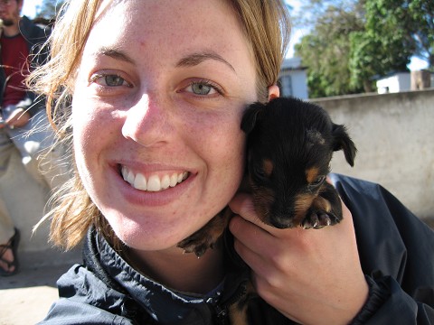 For the last two weeks, we have been staying on the grounds of the church we are working with… AND THEY HAVE PUPPIES! It has been a lot of fun coming back home and being greeted by our “little kids”. We are becoming quite attached. Here is Dulce (we named all seven), the runt of the litter. She´s my favorite – and only in the past few days has she began to outgrow the palm of my hand!