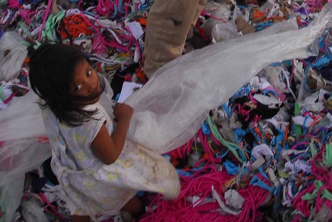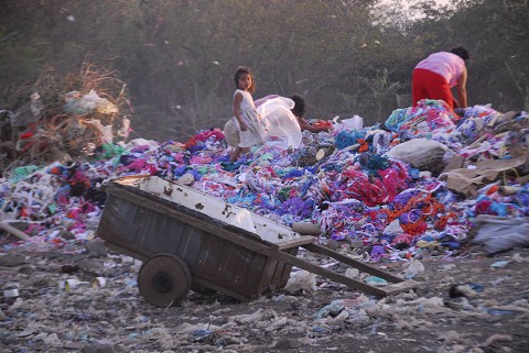 Vivid oranges, greens, reds, blues, purples and yellows lay in a tangled mess amongst the rubbish. It’s kind of like a little “pile of paradise” right in the middle of the dump. A splash of color that holds potential. For the family sorting through the scraps of cloth, it means a warm coat. A colorful, warm coat. A amazing technicolor dreamcoat…