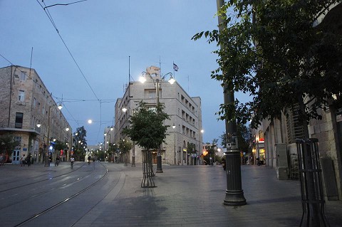 Quiet street of West Jerusalem on Friday night (beginning of Shabbat)