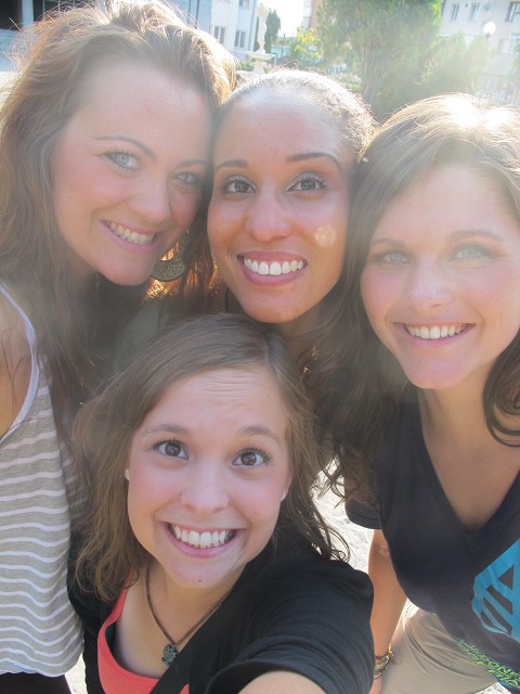 the four of us girls on our day off annnnd me in the shirt my CG girls were so sweet to send me :] love and miss you!! PS. i officially love the european fashion shannon got me into, ha.