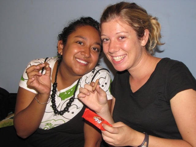 So most people know that my nickname is “Snack attack” or “snackzilla” simply because I love food and I always have snacks with me everywhere I go. Well one night I had a chocolate craving so I busted out my smooshed kitkat that I got 2 debriefs ago…way back in Santo Domingo a few months ago. It was smashed and stale, but Renee and I devoured that little kit kat and we thoroughly enjoyed it. The things you do for little morsels of food (especially CHOCOLATE) when on the world race….! lol