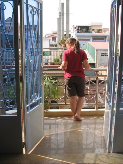 We are staying at yet another YWAM base here in Phnom Penh. It is a 4 story mansion. There are atleast 8-10 bathrooms, 10+ bedrooms, several balconies on each level, a kitchen, a huge dining/living area, laundry facilities, storage rooms, etc. I am convinced that this will probably be the nicest place we stay on the entire race. It is beautiful here. I absolutely love it.