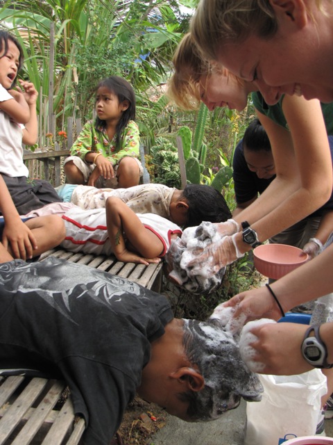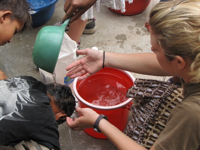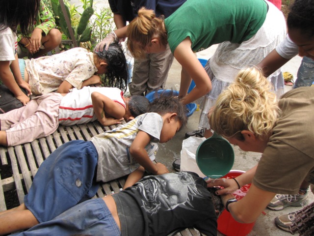 We washed all of the kids’ hair and picked lice out of the ones who had lice. Let me tell you that this was an extremely tedious task. To have a kid in front of you who had thousands of lice eggs in their hair and to have to pick out every egg and pop it was grueling. God was surely testing my patience that day.