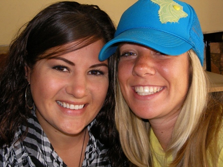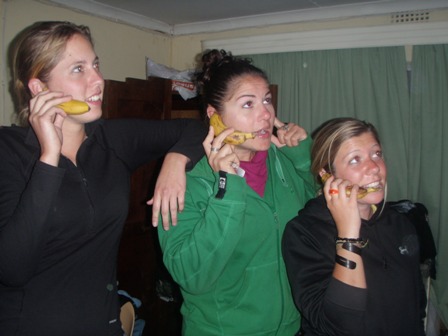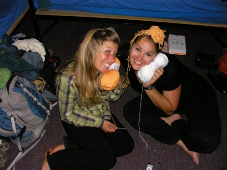 in our freezing cold crammed cabin filled with girls. We were the only two that