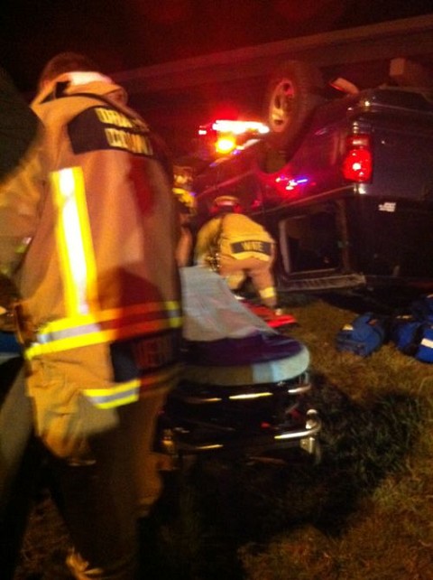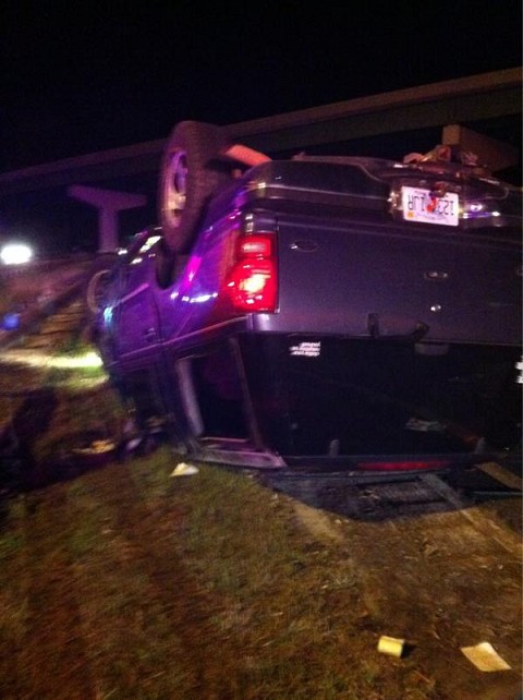 About 30 minutes on the road an animal, I think it was a raccoon, came on the road and the driver swerved. We began to skid when I knew something bad was going to happen. All I could do at that point was grab the handle bar, force my body down, lift up my feet, and prepare myself.