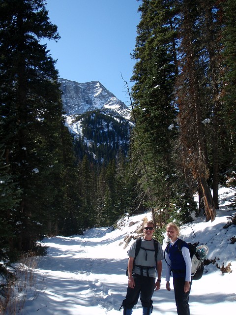 us, rendering even four wheel drive useless. Thus, we were required to hike an additional two miles to reach the planned trailhead, adding four miles and 2500 feet in elevation to our proposed trek. As we hiked the snowy