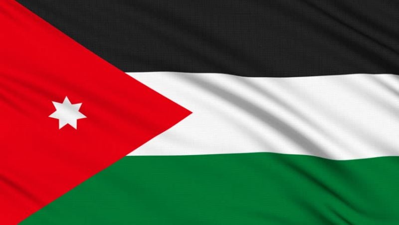 Adapted from the banner for the Great Arab Revolt of 1916. Each of the black, white, and green bands represent the 3 states that make up Jordan. The red triangle represents the Hashemite royal family.