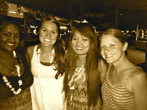 My teammates, Trena and Anjali and I with "Mary", the owner of the bar where Sally worked. He is very intimidating and at first we thought he hated us because of how much time we were spending with Sally, but we eventually made friends with him too!