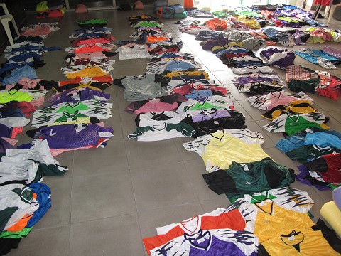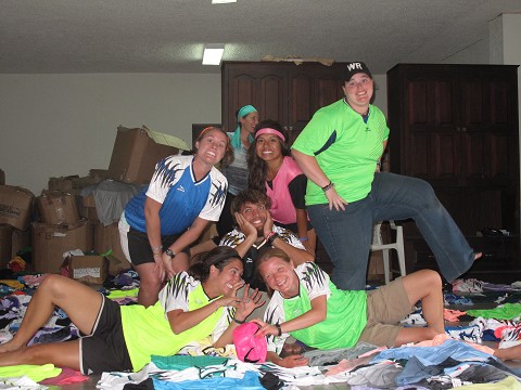 Jersey sorting for the soccer ministry Pastor Armando is doing. He reaches out to communities and starts soccer teams to help the youth. To play on a team, the players must be a part of a Bible Study. He works in very poor, drug filled, gang filled communities. If you are interested in a little of his testimony, read my teammate, Tabby's blog: http://tabbyhubbard.theworldrace.org/?filename=the-tale-of-the-40-thieves The story is amazing!!