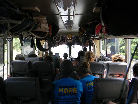 So I started to calm down and breathe a bit. Then, I really just rellished in the immense humor of it all, the humor of God: bags falling everywhere from the overhead storage "compartments", the most intense body odor one's ever smelled, the deep red dust blowing in the open windows and leaving reminance all over our sticky, sweat faces. Squatty potty bathroom breaks in the bush with pricklies touching our butts. No shame–everywhere saw everything.