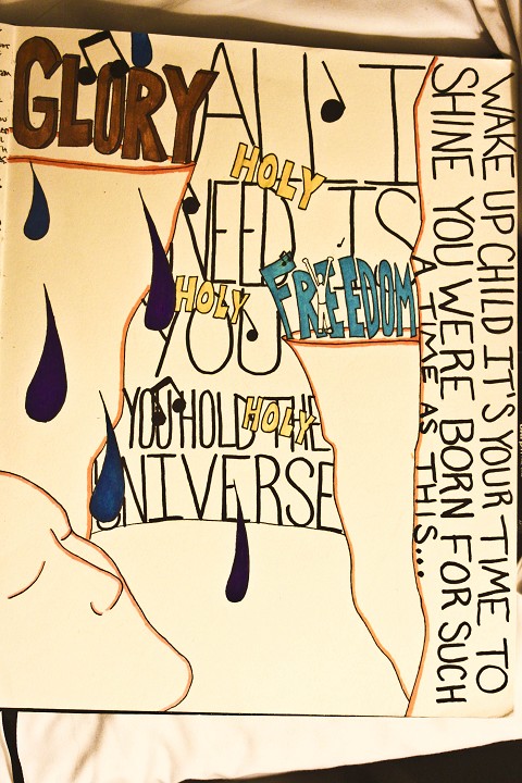This was ont night is worship. Just a beautiful song to be prayed. Then the drawing is acctually something that I replicated in my journal from the prayer room at the last place that we stayed. I thought it was beautiful.