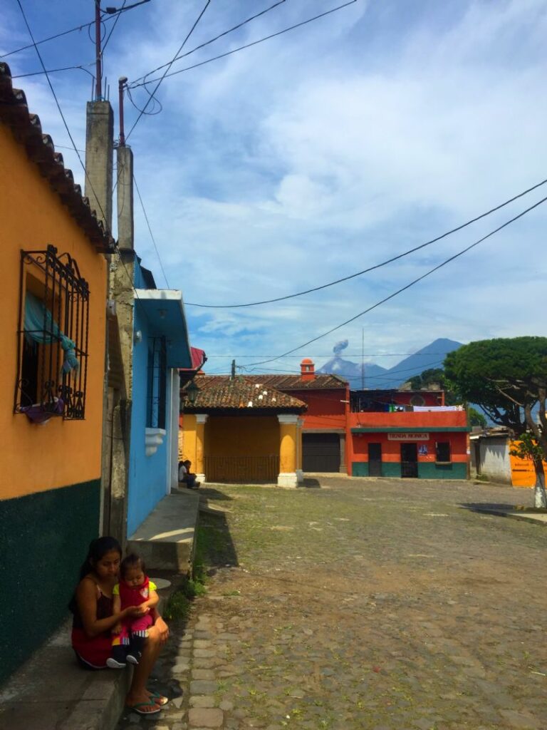 After a 12 hour travel day due to Delta losing power; the 40 of us finally made it to Antigua, Guatemala! We got to our house where we all have bunkbeds and running water! This morning we were able to sleep in until 8am, where 6 of us decided to take a self guided tour around the beautiful town. We walked out of our community, and were filled with so much joy. The town is surrounded by two volcanic mountains (one is active)! We walked around market place for a couple miles until we reached a city square. In the middle was a 50 foot pool of water where all of the local women were washing clothes on washboards. As you looked around you saw kids running around laughing, playing, or running errands for there family! Our mission was to find a coffee shop because we were all so tired from yesterdays travel. With the best Spanish we could work up, we finally found someone and asked “Donde es Café”; which means were is the coffee or the cafe. She pointed up the street where we saw a sign that said “Café”. We thanked her in Spanish and began walking to the coffee shop where there were two people working: a man and a women. We walked in looking like very confused Americans trying to ask for coffee in Spanish. For about a minute we tried hard to get across the point that we needed coffee to the 50 year old man working there… Come to find out he was just enjoying the comedy show of our struggle to speak Spanish and he said, “would you like it better if I spoke in english”? We all laughed and he told us that him and his wife had moved to Guatemala 2 years ago from San Francisco, California, to open this coffee shop and also start an animal rescue organization. Next door to this coffee shop was a family who was making bread and tortillas in there home for all of the locals. I being very curious walked over to them and again tried speaking Spanish; asking what there names were and how old the children were. I ended up talking to this 17 year old girl named Annette who was holding a 1 year old girl. She was at the family’s house taking care of the kids that were running around. We had a conversation until I ran out of Spanish questions and phrases, and I helped her with the 1 year old! Overall this day so far has been unforgettable! More updates to come!