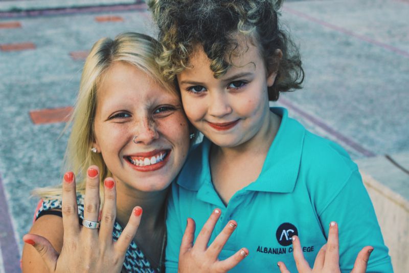 Once we got back to Durrës we went out with the youth on Friday night and was able to help with their street evangelism. There we met an American! Cary, who is a school teacher here, brought her daughter to get her face painted. Callie and I quickly started conversation with her because for one she could understand us and we wanted to know how she ended up here, turns out one of her teacher friends, Tom, always talks about the world race and she knew exactly what we were doing. We were able to pour into Cary and play with her daughter for a little while. Later that night we got to meet Tom who took us to a wonderful Italian place and then invited us back to his house to have desert and play games.