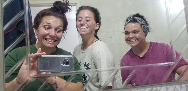 This super selfie was taken in our personal bathroom (yup, us girls had our own and the guys had their own)! We definitely made this bathroom our own that month. We dyed lots of hairs, did many face masks, and put on lots of makeup here. We also got to take hot showers with incredible water pressure! What a luxury.