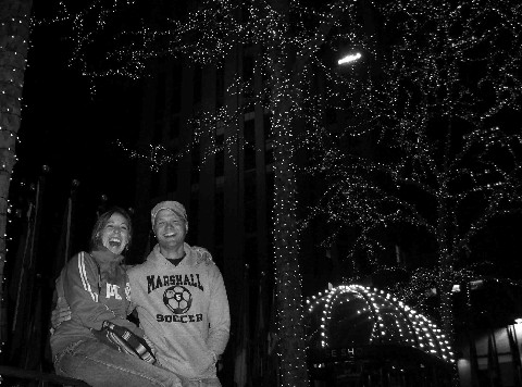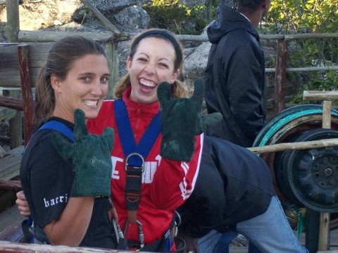 teammate Gretchen and me and our 80 meter, 19-story, 60 second freefall… to