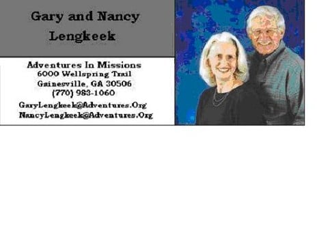 Gary and Nancy Lengkeek are volunteering their time, efforts, prayers, and any expertise they might have to your discipleship and growth this year. They will be joining conference calls with you, keeping up with your blogs, and joining you on the field for debriefs. I’m going to post their Bio here, though many of you may know them from Training Camp already.