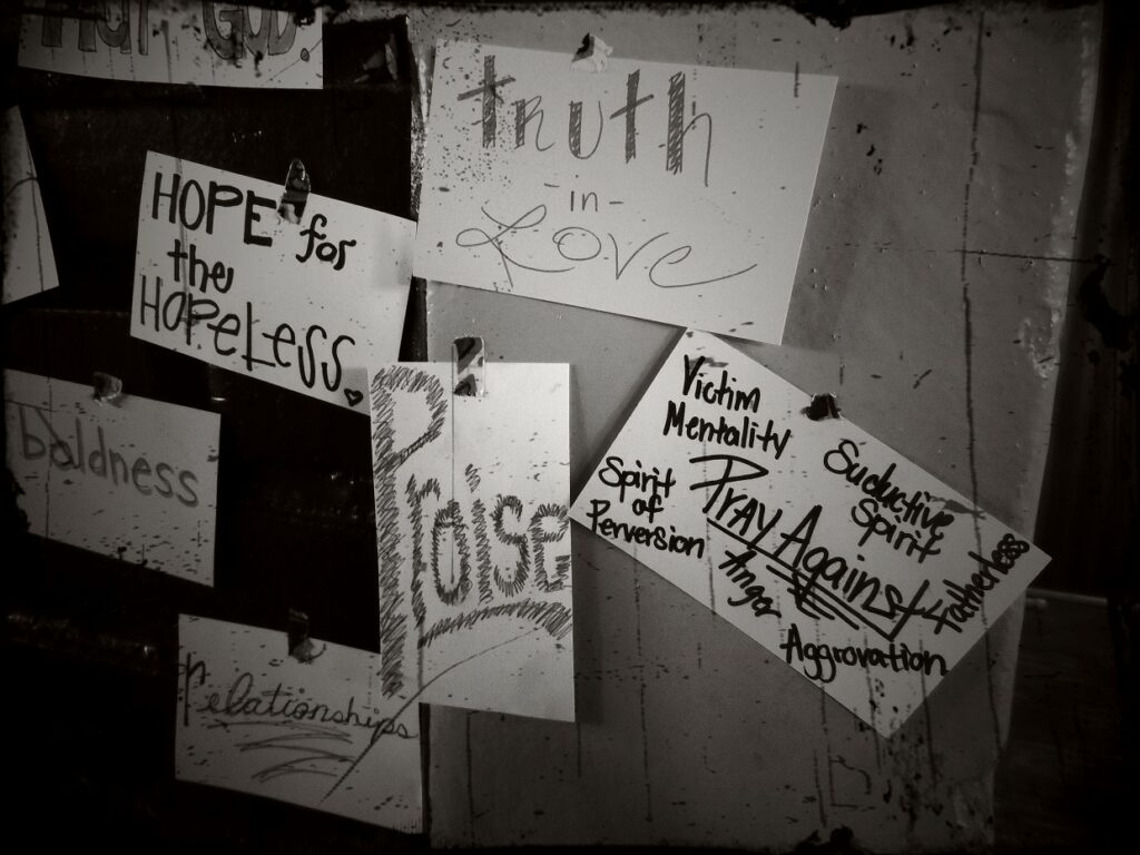 A few people created a prayer wall of ideas and requests to be prayed for, things like the countries as a whole we are ministering in, struggles like depression, sexual sins, addictions, feelings of unworthiness, and wounded relationships.