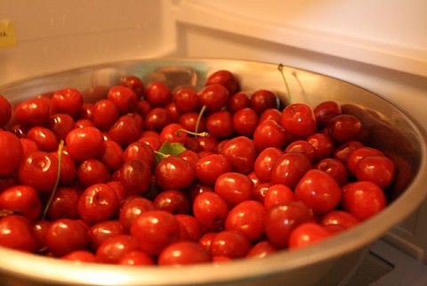 Cherries.  One day the kids came home with a HUGE bag of cherries they picked from a neighbor’s tree & we made some awesome cherry cobbler.