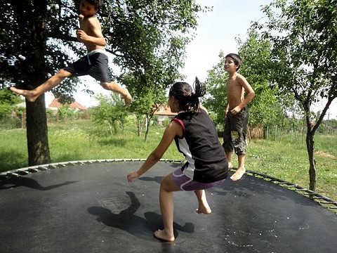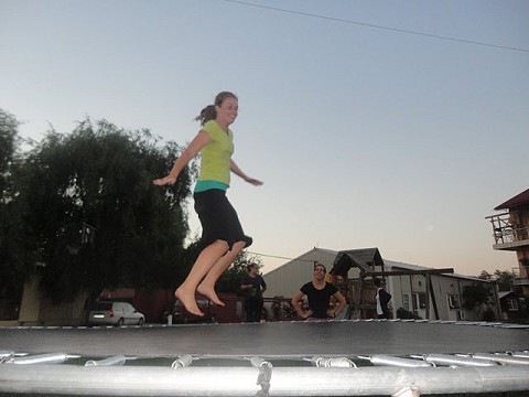 Jumping on the trampoline in the backyard. I forgot how much fun those things are. I fully plan on putting one on my wedding registry 🙂