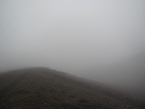 Looking towards the peak, visibility was, uhm, non-existent. Other climbers 10 yards ahead of me were completely hidden and silenced in the dense fog. It seemed endless.