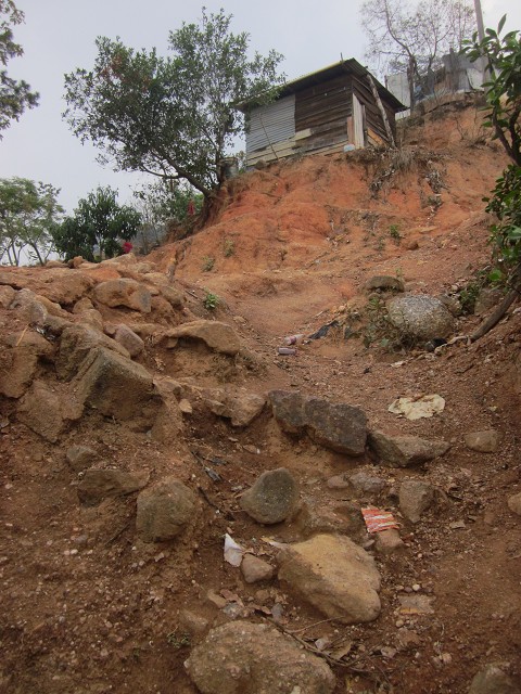 with his mother and five brothers and sisters. There are two twin beds (old, moldy stacked mattresses), mud floors.