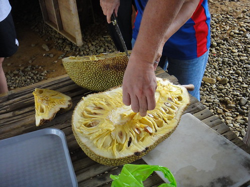 Who’s hungry? Coming to the Philippines, I thought the fruits were a pretty safe food group – they were never alive, and they’re usually sweet and delicious and good for you. Well, I soon found that in addition to the familiar main-stays of pineapple and bananas, the slightly less familiar mango and guava, there lies the truly unfamiliar. Some of the favorites were the small “hairy cherry” rambutans to the hand-picked lanzones, both nice little treats to grab a snack. The tiny lime-like calimansi are commonly used to add some extra flavor to most everything, and can make for a soothing tea on a sore throat. Grace, the mother of Mt. Moriah, shared her much-beloved atis/sugar-apple which is exclusive to more coastal areas, and quite delicious. Jeremy found us a huge jackfruit, which is shown below trying to figure out what part is good (relatively…) to eat. I kind of regret that I never had durian, a very popular fruit in the area that is notoriously despised in the mouths of foreigners. I tasted some durian candy, and I think that was enough.