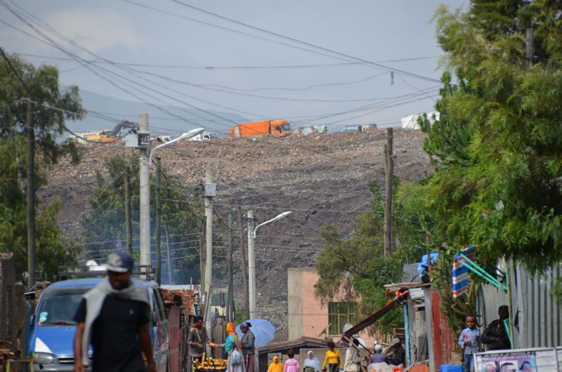 Here is a small section of the trash pile. (All trash not dirt) This is the area where they had a landslide of trash, just over a year ago. The trash slide destroyed homes as well as trapped and killed over 300 people.