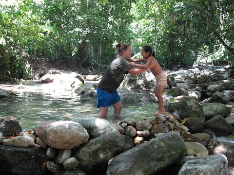 Lindsey and Maria cool of at the river.                                            The kids loved this game.  One person was chosen as the leader.