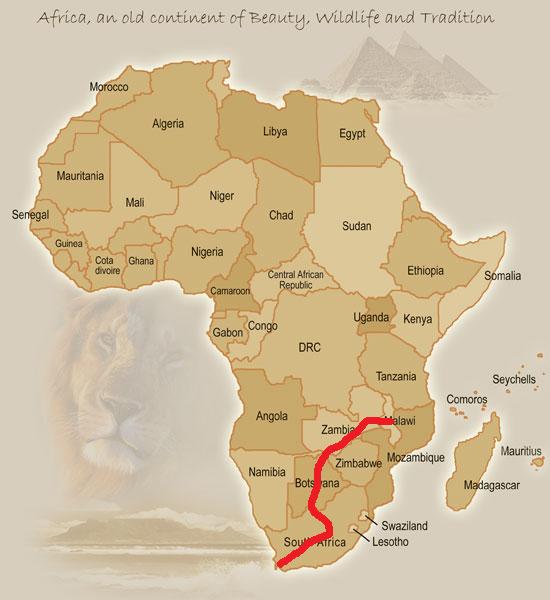 Senga Bay, Malawi to Cape Town, South Africa.