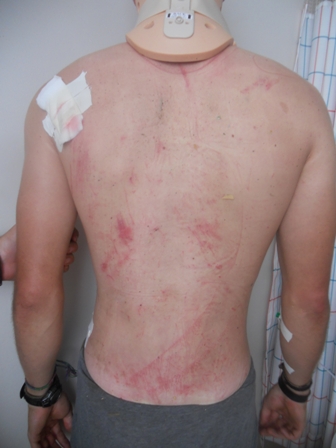 from my swollen lower back, I must have hit the ground flat on my back and slid