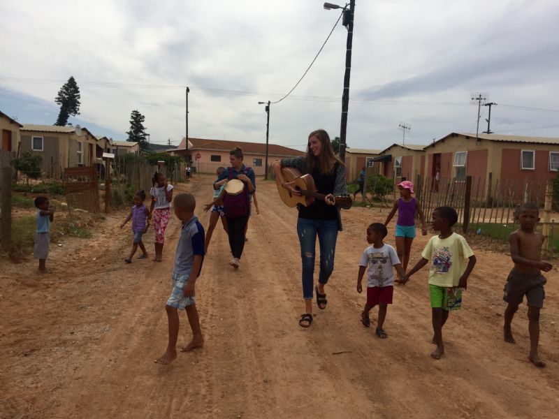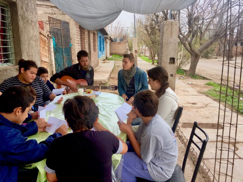 To a kids’ gathering on a porch in the red zone of Mendoza, Argentina.