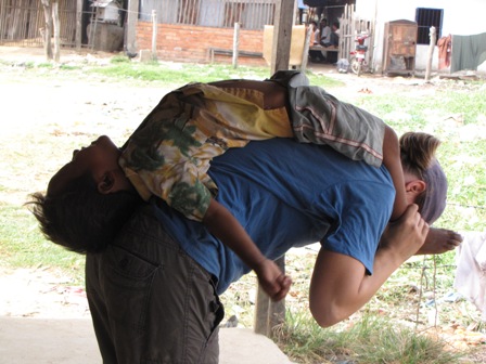 Me with some of the kids. My goodness I’m enjoying them so much – these Cambodian kids have stolen our hearts!