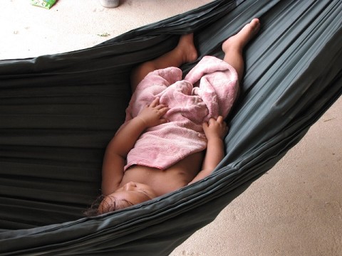This it Sombat, and she is dying of AIDS. We met her the first day we were here and immediately she came over to us and the pastor and our team began a conversation with her. By the end of that brief conversation, I had the privilege of praying with her to accept Christ as her savior. Since then, we’ve brought her left over food and gone by to pray with her on numerous occasions. She’s still not doing well, and really, it will take a miracle from God for her to survive much longer as her appetite is gone and her energy level only allows her to take 10 or so steps at a time before she must stop to rest. It’s a painful sight to see. The second picture is just a local baby sleeping in a hammock – they love hammocks here!