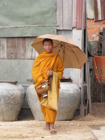 Even at Rubbish Mountain, among the poorest of the poor, the monks would make their rounds collecting food and donations from families in exchange for a blessing. Every day, the Monks have until 11am to collect and eat their food for the day. The second picture is of a woman that lives across the street from our church. I haven’t been able to speak to her much, but I took an instant liking to her…because she’s one of the few people I’ve seen with a pet kitten 🙂 Looks just like Simon.