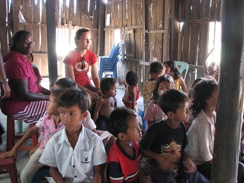 Me with some of the kids. My goodness I’m enjoying them so much – these Cambodian kids have stolen our hearts!