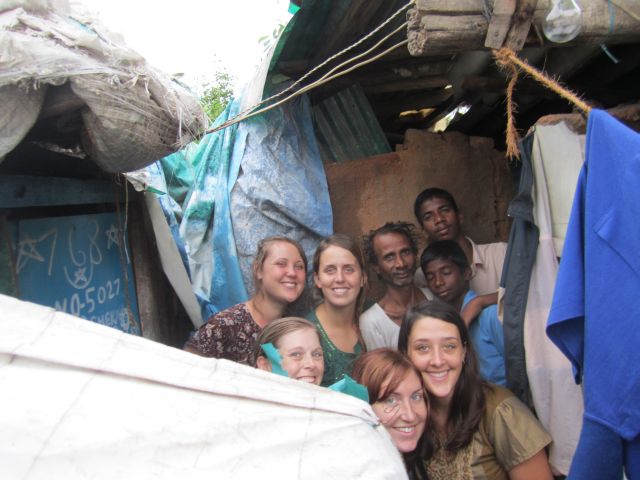 Back Row: Addie, Christina, Rajendra and His Two Sons; Front Row: Myself, Cara, and Rebecca- Rajendra’s House is the Building on the Right with the Tarp and Metal