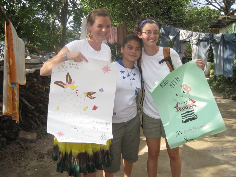 Lindsay, Alexandra (Kenya), and Ashley with pictures that Alexandra made for them
