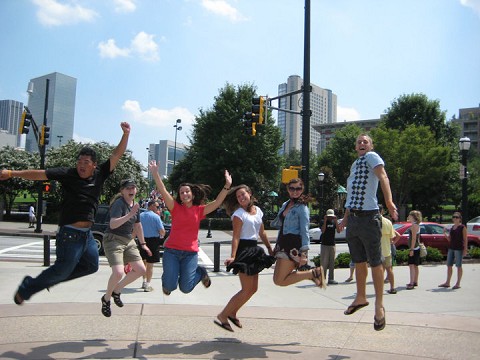 When we went back to the park, we saw a couple of World Race squads with signs for free hugs so we talked to them. While we were there, we met a recent Georgia Tech graduate from France named Florian. We talked to him for awhile about the World Race and God. We also gave him our blog information so he could stay connected with us. We look forward to what God will do in his life.