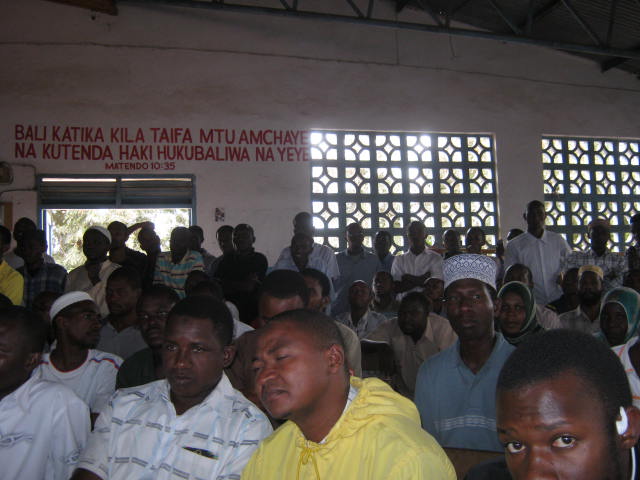 A few days ago, our all female team was walking house to house with the pastor that we are working with this month. After visiting two homes, we saw four men. The pastor told us that they were Muslim University students at the local Muslim University (the only one in Tanzania happens to be in Morogoro). We approached them and started to talk about our respective faiths and our holy books. As we continued, our friendly discussion started attracting more and more students. Some of my teammates were able to talk to some of the students one-on-one while the group was debating. By the end of our talk, there were more than thirty-five Muslim University students.